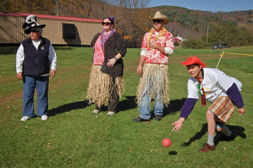 Your team can contain two to four players — the competing team with the most players will be given all advantages of play (choose color, throw first pallino, throw first bocce). Ties in play and in costume contest will go to the team with the most players.